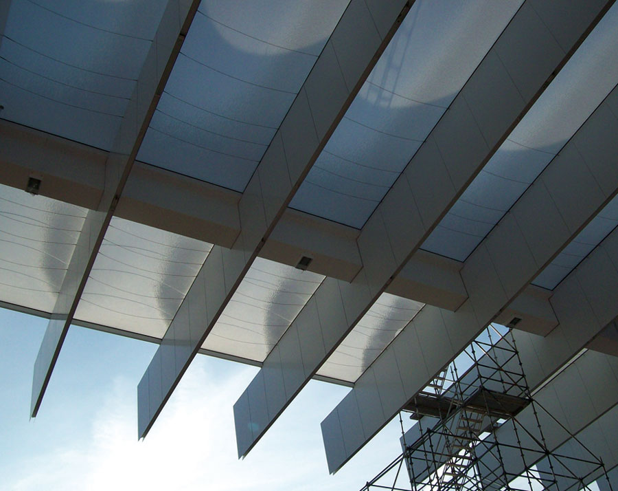 Die im klimatisierten Bereich dreilagig und im Freibereiche zweilagig ausgeführten Kissen wurden auf eine Stahlunterkonstruktion montiert. Unsere Leistung umfasste die Montage der ETFE-Kissen, der Luftversorgung und den Ein- sowie Ausbau der Arbeitsschutznetze. Auch die Abstimmung und Kapazitätenplanung mit der örtlichen Bauleitung gehörte zu unseren Leistungen.